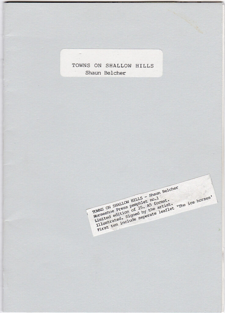 Thus inspired I self-produced a small poetry pamphlet ‘Towns on Shallow Hills’ which I remember Ivor Cutler reading but not buying on account as he said he had read it…said pamphlet I sold to various friends and poets ( I still have a list) and I am pleased to say still in the National Poetry Library collection which is apt as printed on their photocopy paper between shifts.